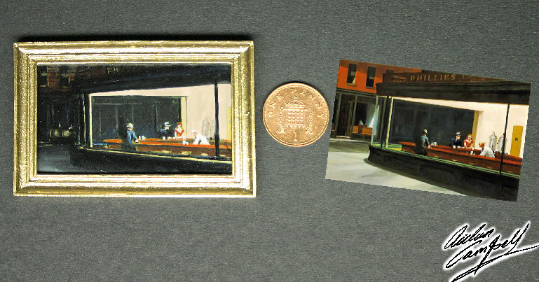 Copy of Edward Hopper's Nighthawks. Size: 60x38mm