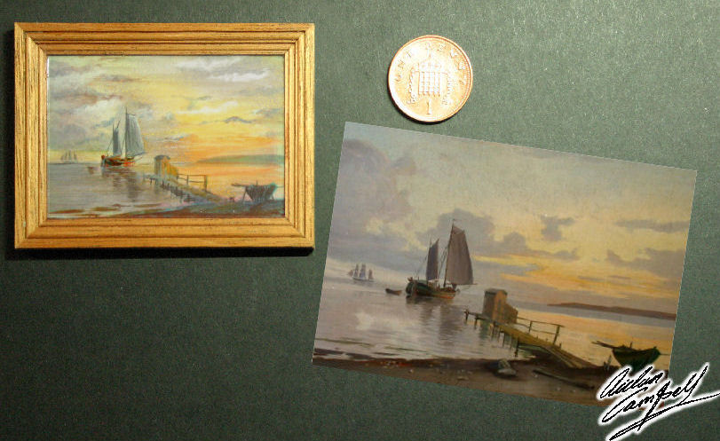Copy of an East Anglian coastal painting- Size 54mm x 38mm
