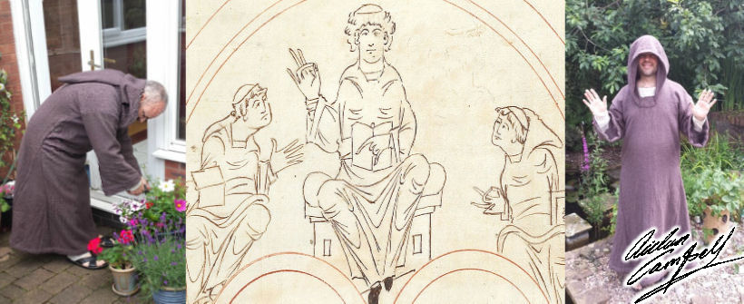 Reproduction early medieval Benedictine monk's woollen robes and linen under garments produced for a professional costumed heritage interpreter Size: full length