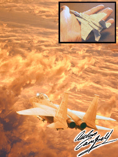 Crude 1/144th scale child's toy repainted as a result of a bet to prove how much more of an impact use of colour and light has over dimensional accuracy. Size: wingspan 90mm