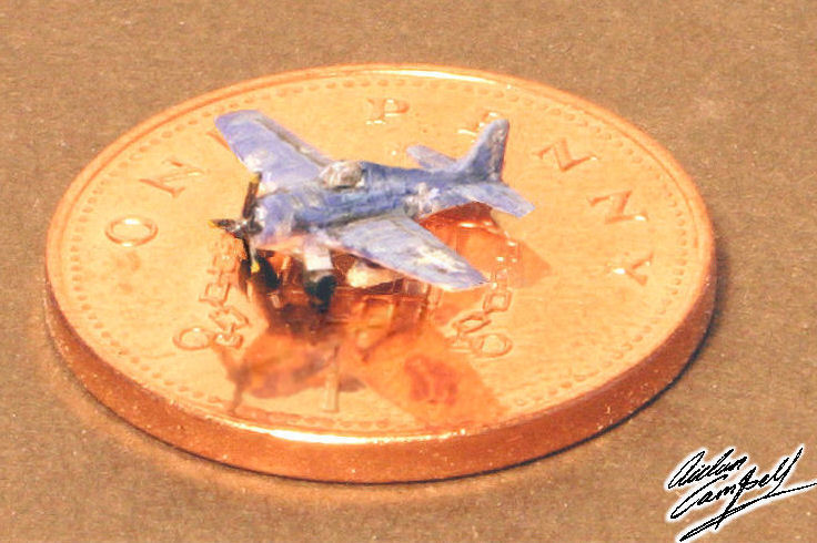 Scratch built novelty micro model of a WWII aircraft Size: 12mm wingspan