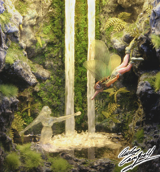 Scratch built and hand sculpted  fantasy diorama of Nymphs and fairies at play. Size: 100mm square