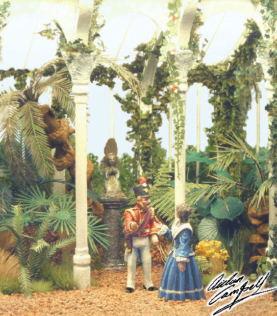 Scratch built illuminated diorama depicting a secret assignation Size: 100mm square