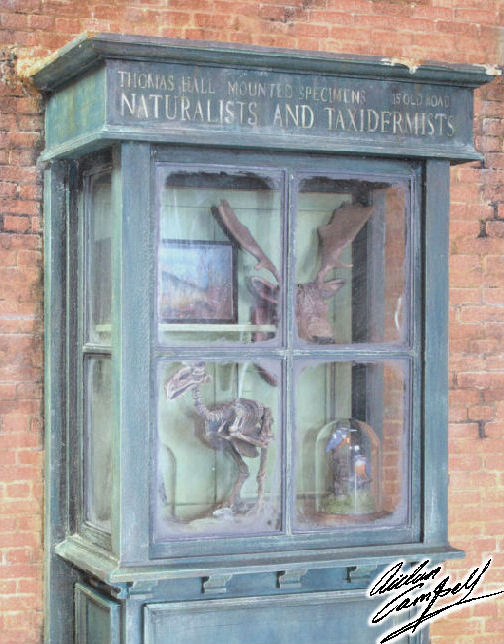 1/12th scale taxidermy shop window display featuring a variety of scratch built and hand sculpted items. Size: area shown approx. 240mm tall