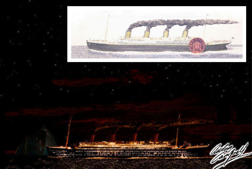 Super-detailed and heavily modified 1/1200th kit of the RMS Titanic in a hand sculpted seascape. Size:  approx. 240mm long