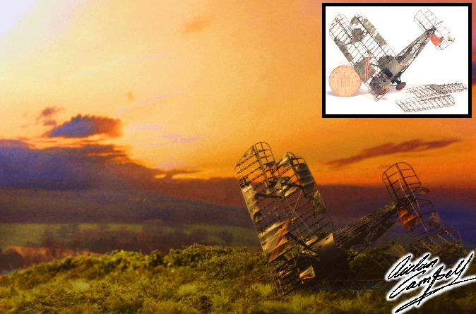 1/72nd scale crashed Sopwith camel constructed from a heavily modified and super-detailed plastic kit. Size: fuselage approx. 90mm long
