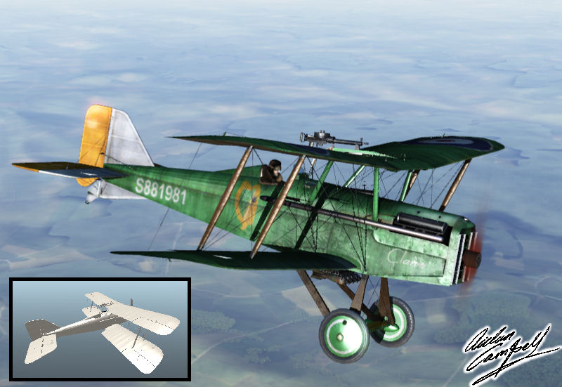 Digital skinning (painting personalised texture files in the bright emerald green requested by the client) for an aircraft from a WWI flight simulator. Size: n/a