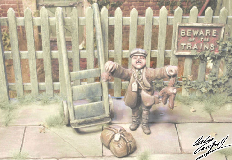 1/24th scratch built and hand sculpted depiction of a WWII evacuee. Size: area shown 180mm wide