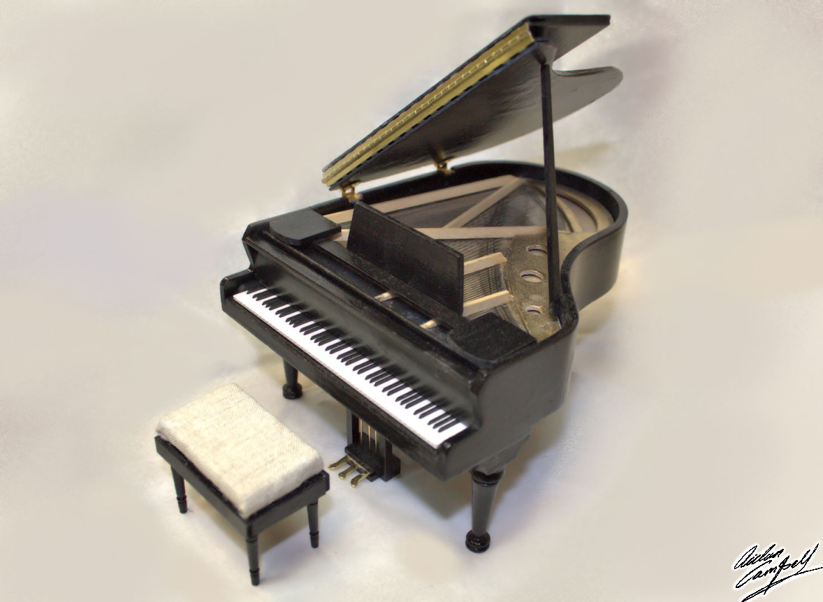 1/12th scale grand piano made from a complex multi media kit that was more an aid to scratch building than a standard kit. Size: length 140mm