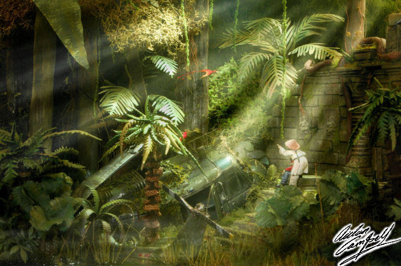 1/48th scratch built jungle temple ruin diorama. Size: area shown approx. 250mm square