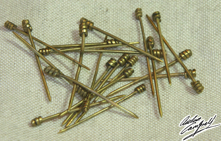 Hand made  dress pins with spiral bound and traditionally heat fused heads (no ugly modern solders). Size: approx. 30mm long