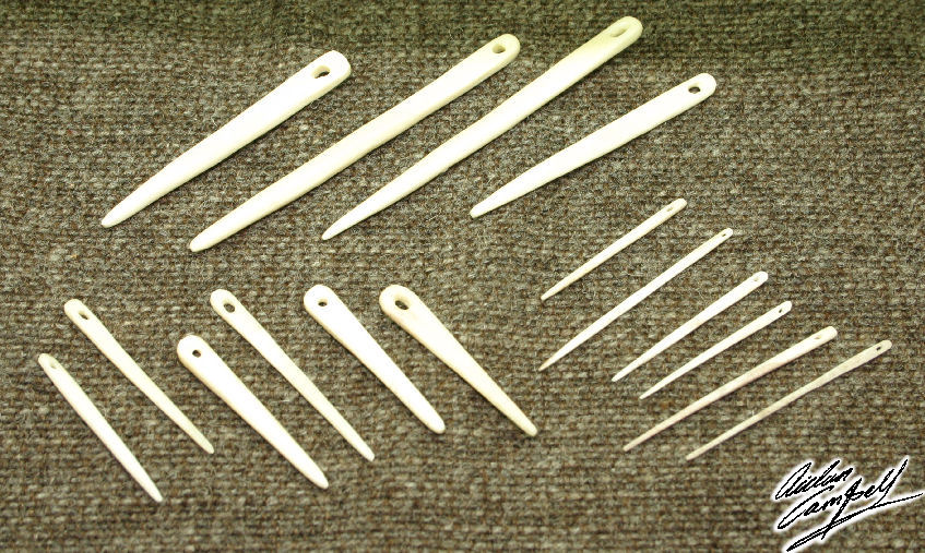 Various sizes of hand carved bone needles Size: average 50mm long