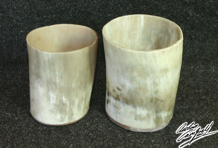 Cattle horn drinking beakers. Size: approx. 120mm tall
