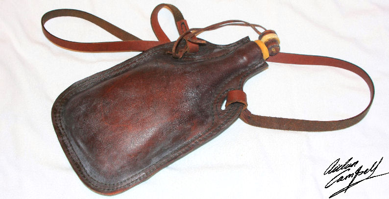 Cuir bouille water bottle (hand stitched, waxed and baked rigid leather). Size: approx. 260mm tall