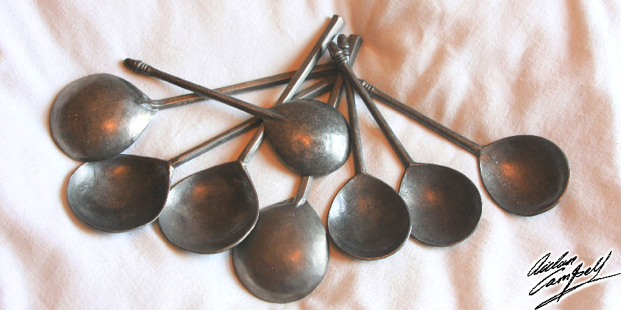 Aged and patinated replica Tudor/Stuart spoons for a museum handling collection. Size: approx. 160mm long