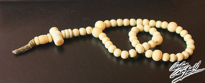 Copy of a commonplace style of medieval prayer beads carved from cattle bone. Size: each bead approx. 8-12mm diameter