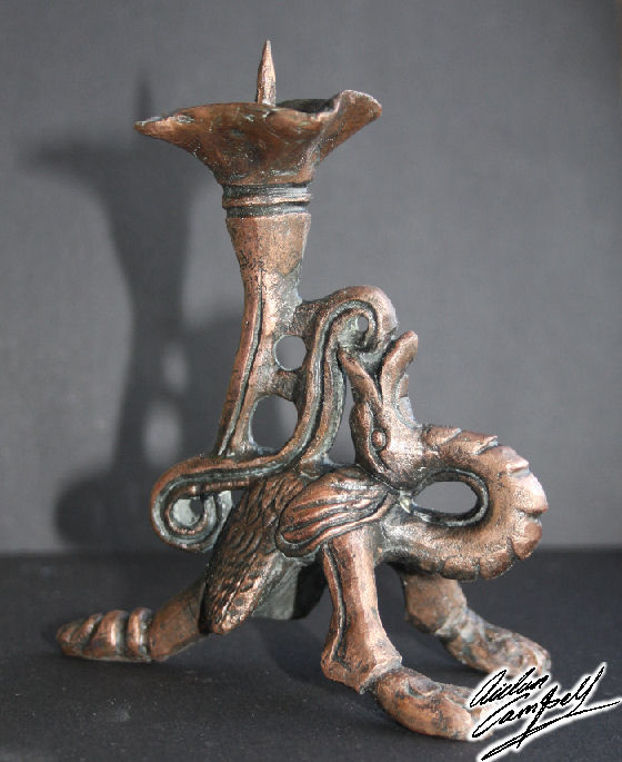 Aged and distressed cast bronze replica of a medieval prickettt candle stick. Size: approx. 240mm tall