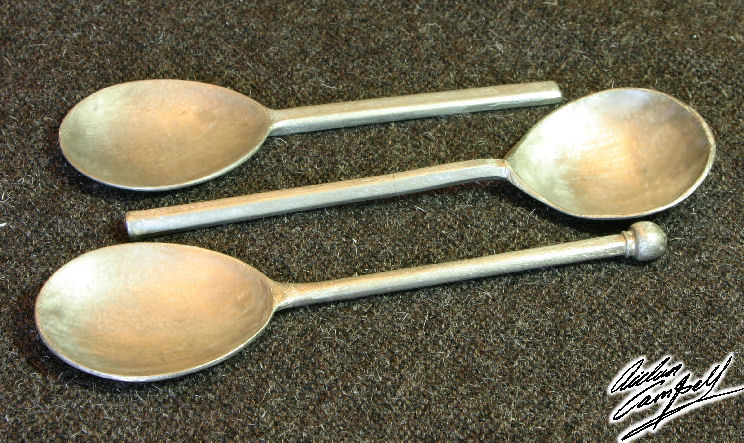 Replica pewter spoons cast in moulds taken directly from surviving period pieces. Size: approx. 200mm long