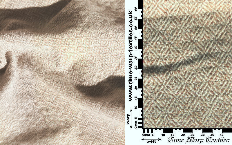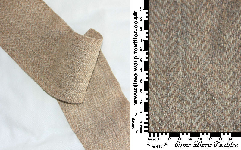 2-2 Broken diamond twill produced from subtly contrasting tones of kempy undyed naturally grey yarn, used across much of early history up until the Norman Conquest