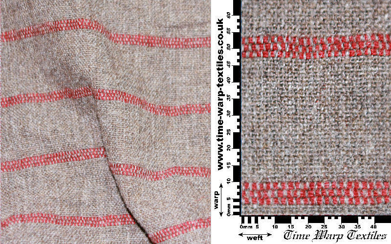 Replica of an Anglo Saxon rayed cloth produced with genuine madder dyed yarns against background of undyed natural brown