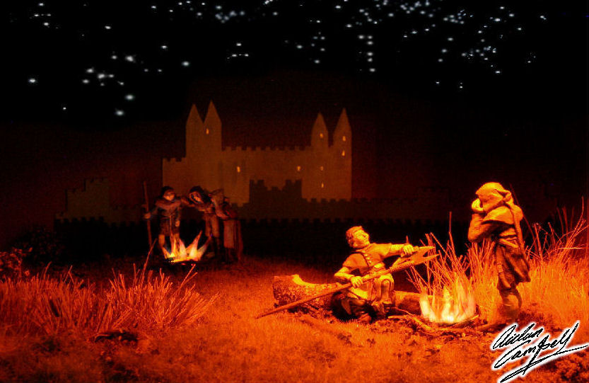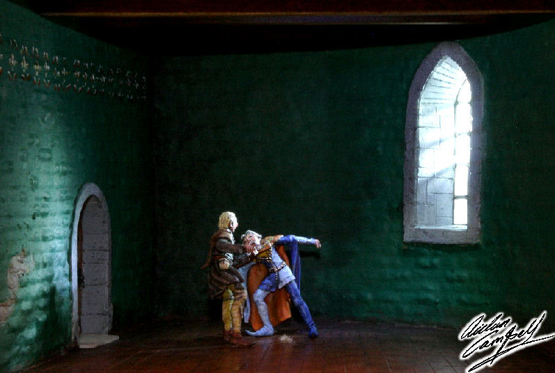 One of a series of quickly constructed small sized illuminated gallery dioramas telling the story of the peasants revolt. Size: model 250mm square