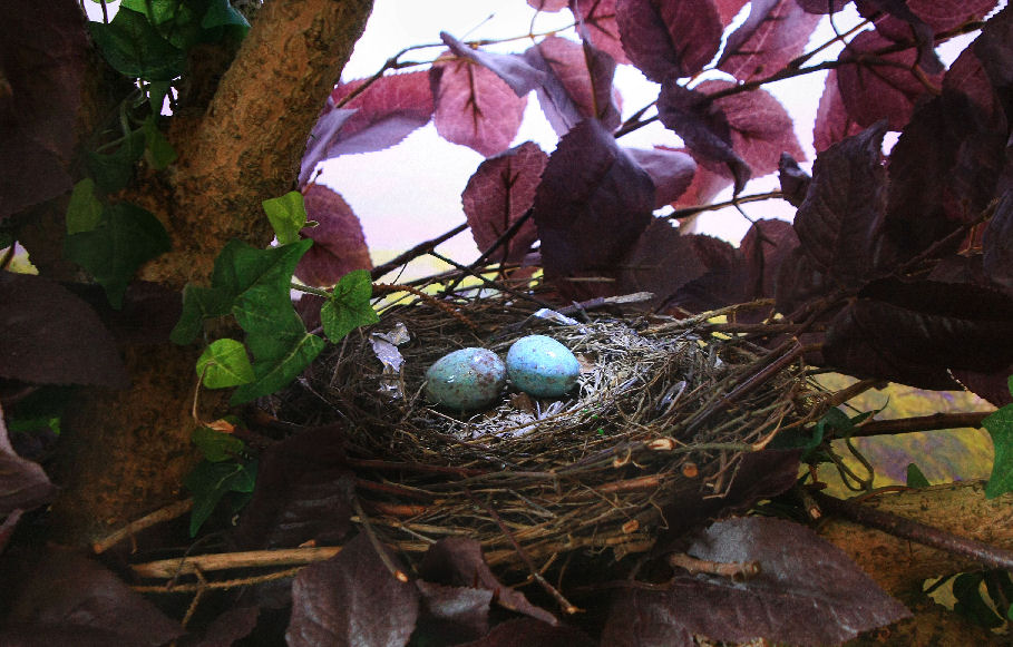 Detail from a shop window display diorama of a magpie's nest. Size: diameter 250mm
